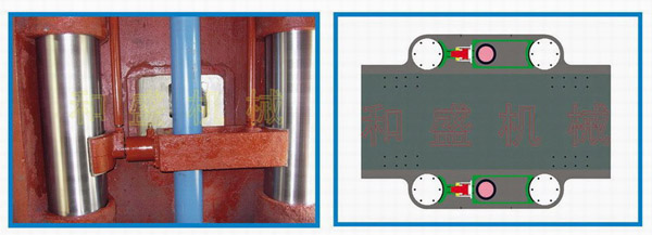 4:升降導柱與中座接觸面采用表面軋制美國杜邦“聚四氟乙烯”聚合物材料的導套;導套表面軋制成圓形儲油坑,在少油或間隙斷油條件下能正常工作,具有摩擦系數低,耐磨性能好,使用壽命長等優點。